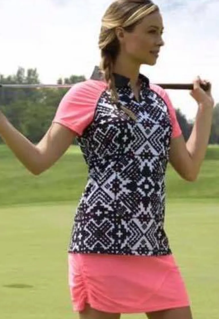 SwingDish’s Fitness Signature Skort from our Fitness Collection is great for any sport and any age. It has hidden drawstrings at the hem that creates a flattering ruched look. The unique Aztec designs also include a removable ball marker placed on the waistband.