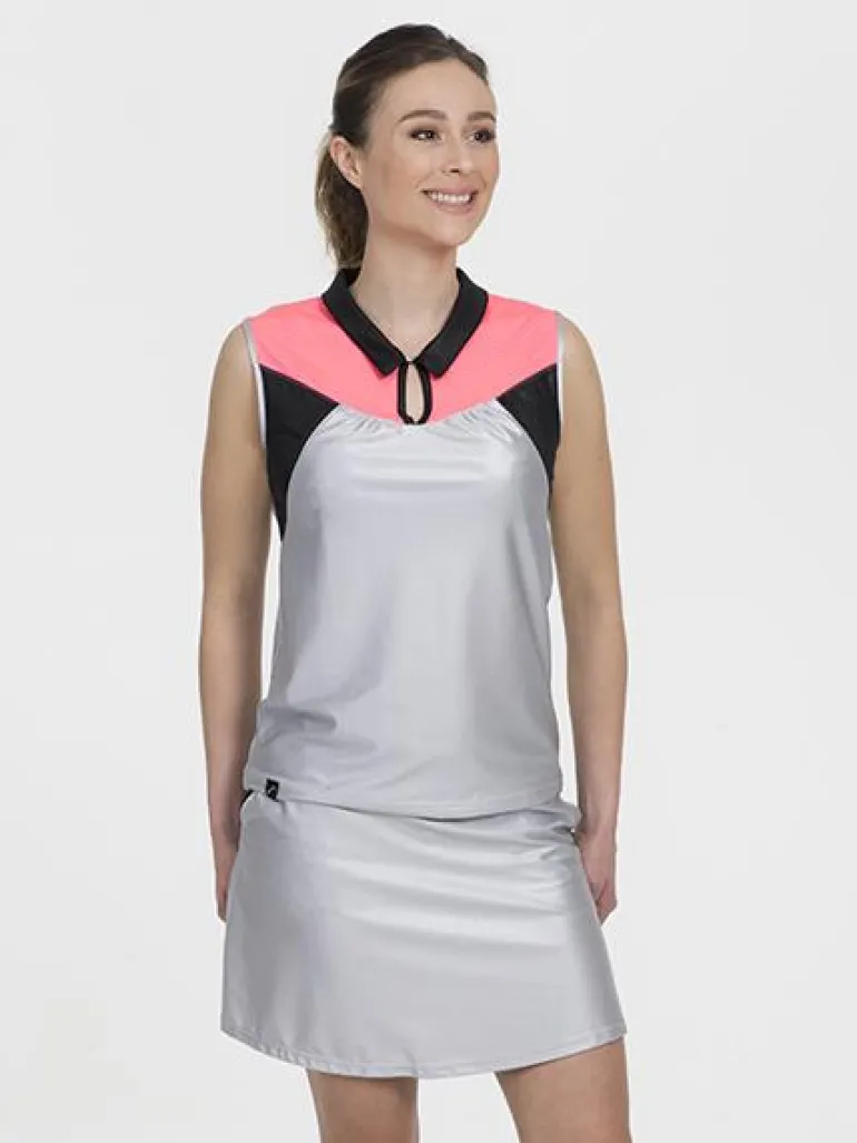 Slip on this unique SwingDish Savannah Sleeveless Polo and the flow of the fabric will have you hooked. It has a beautiful button closure accent or you can leave it open for a simple V neck look. Check out more from our Fitness Collection.
