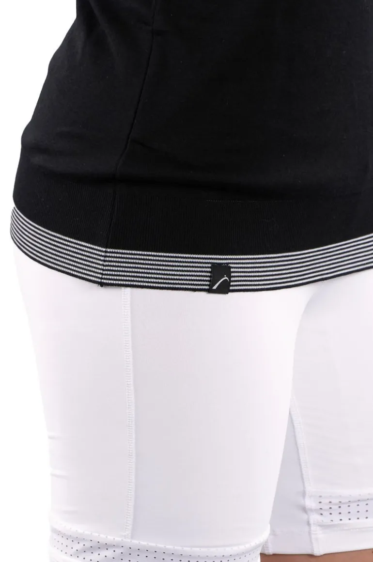 This versatile silhouette is sure to serve the winning point for any occasion. The ribbed, striped hem brings a sporty appeal to this luxe, black sleeveless knit top, which is crafted from ultrasoft washable Tencel.