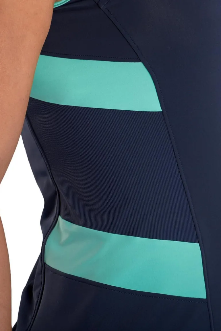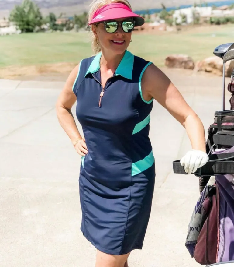 Unleash your power in our super flattering Ariel dress. The performance fabric is soft, stretchy and comfortable contouring to your shape. The rose gold and Swarovski crystal zipper make you sparkle on or off the course.