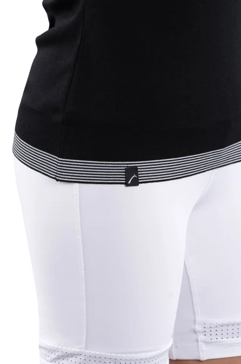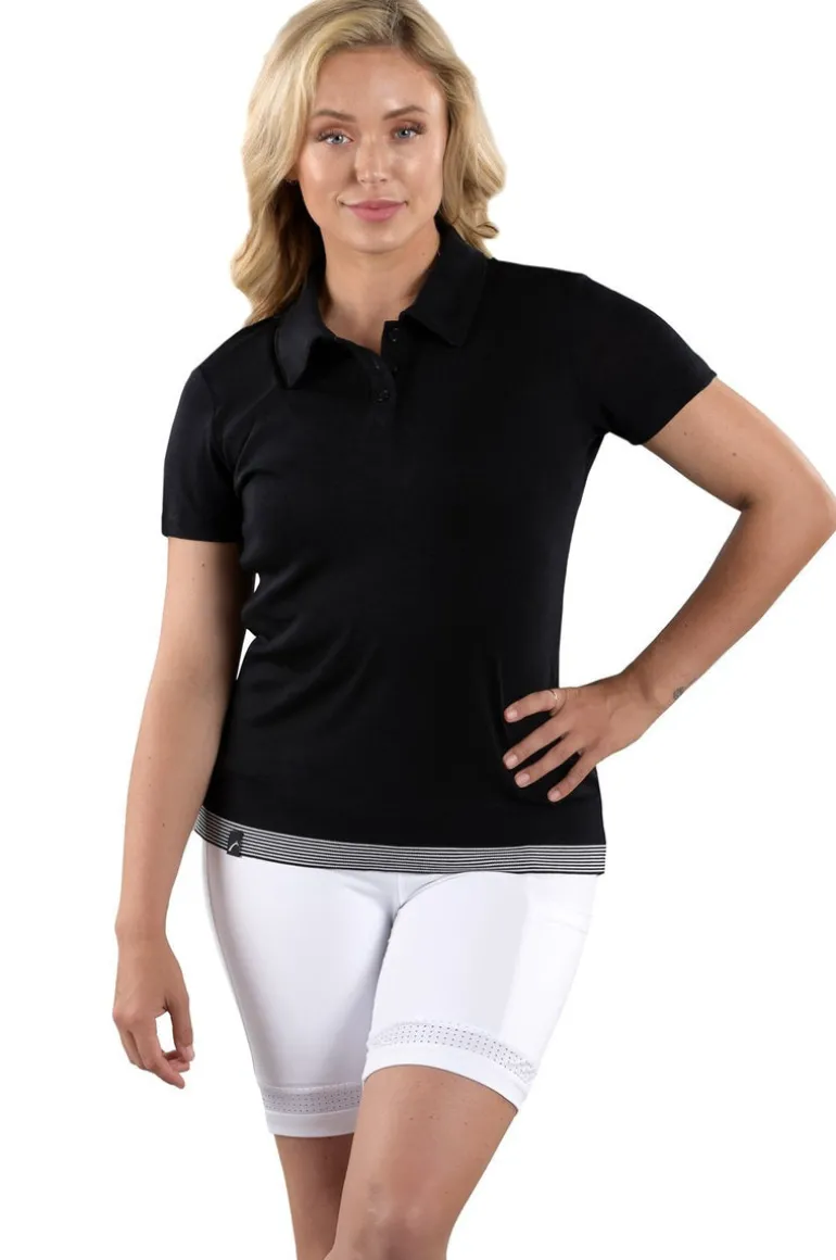 This black knit version of our signature Tailored Fit golf Polo is crafted from lightweight LYOCELL and Cotton with a striped motif rib at the hem. The breathable fabrication is designed to wick moisture from the body, helping to keep you cool, dry, and comfortable on the links.