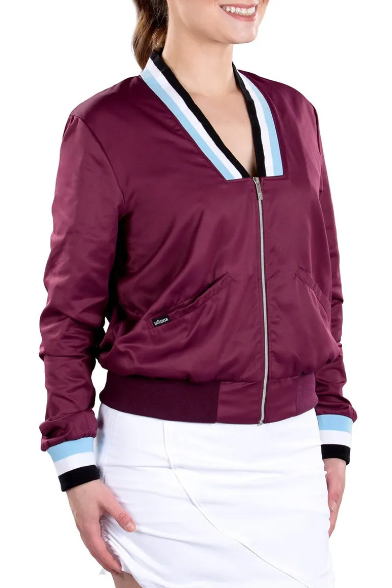 One of the beauties of the Berlin Mulberry Women’s Bomber Jacket, along with the rest of the Mosaic Collection, is that it can be used just as easily on the tennis court as it can on the golf course. Made to move and flex with your body, the Mosaic Collection is a display of stylish and chic clothing that is sure to turn heads no matter what course or court you’re playing on.