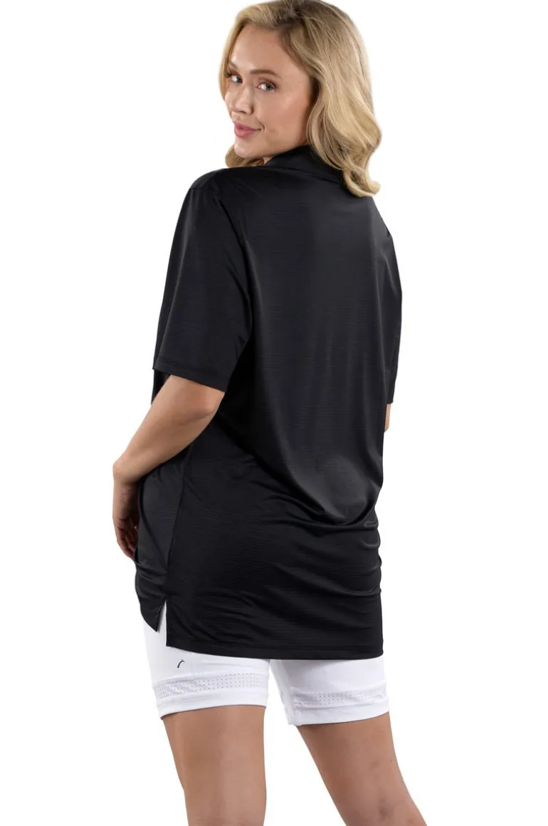 Versatile and chic, The boyfriend polo in blue delivers a slightly-oversized fit that radiates effortless polish and ease. The perforated sporty fabric makes it a perfect match for the Valentina Skort or let it hang loose over our Lylia Biker short for that relaxed laid-back look.