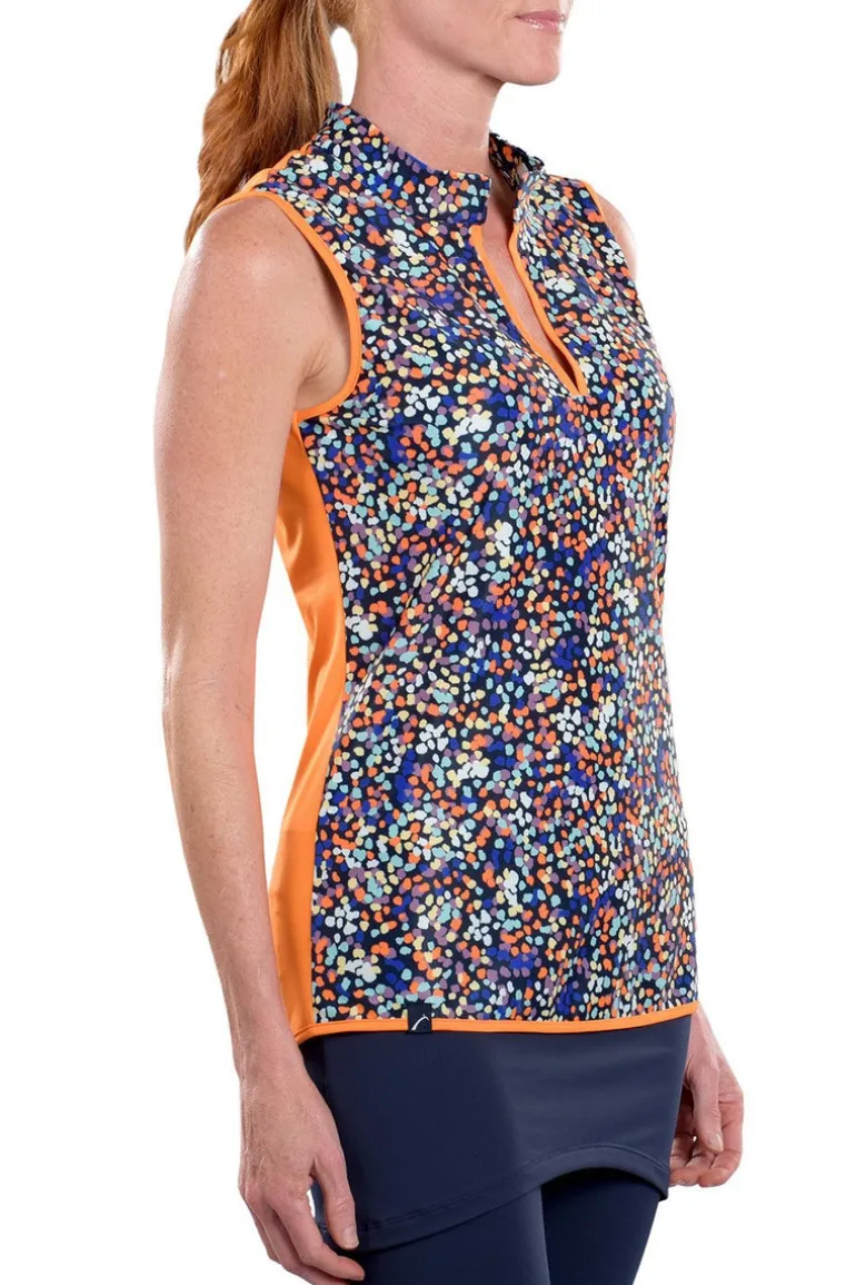 A chic spliced neck makes this Confetti Print Gianna top streamlined and versatile. This wear-anywhere tank is an ideal complement to the Athena Skort, or Quinn Leggings.