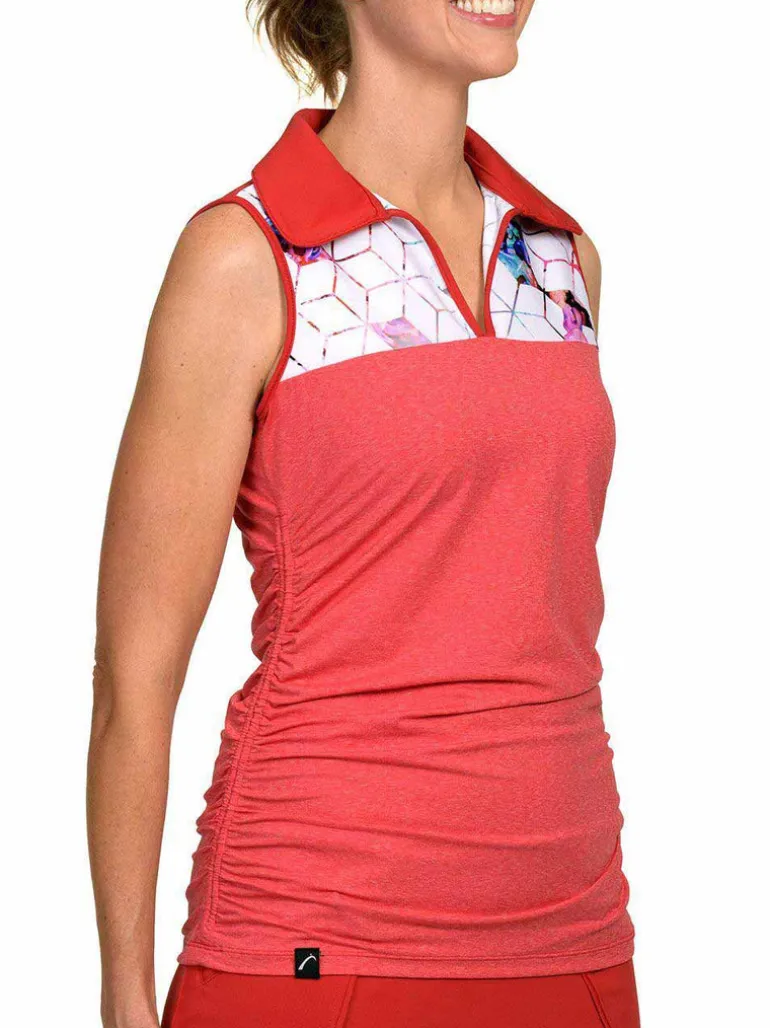 Our top selling style, the Melissa’s back keyhole cutout and rouched sides offer a sassy alternative to your average sleeveless polo.