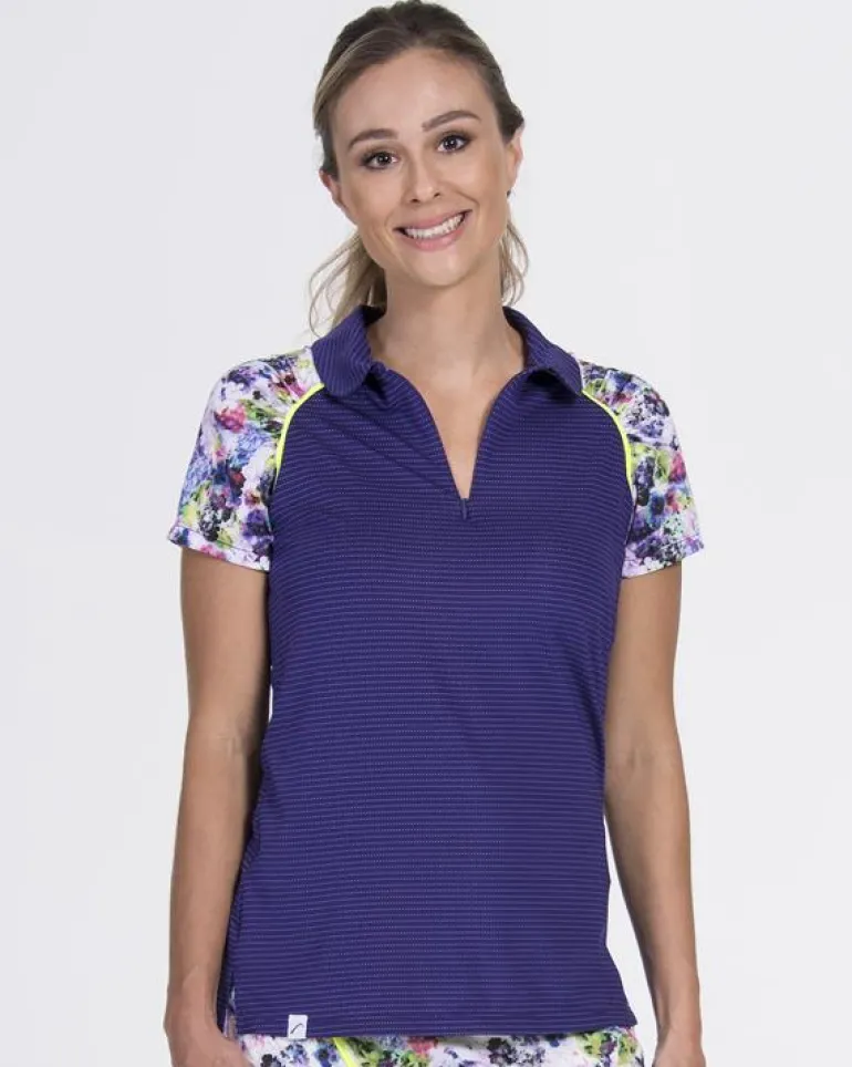 If you are searching for something new and different check out this purple and print Neon Polo from our Neon Splash Collection. Don’t miss the ruching on the back collar.