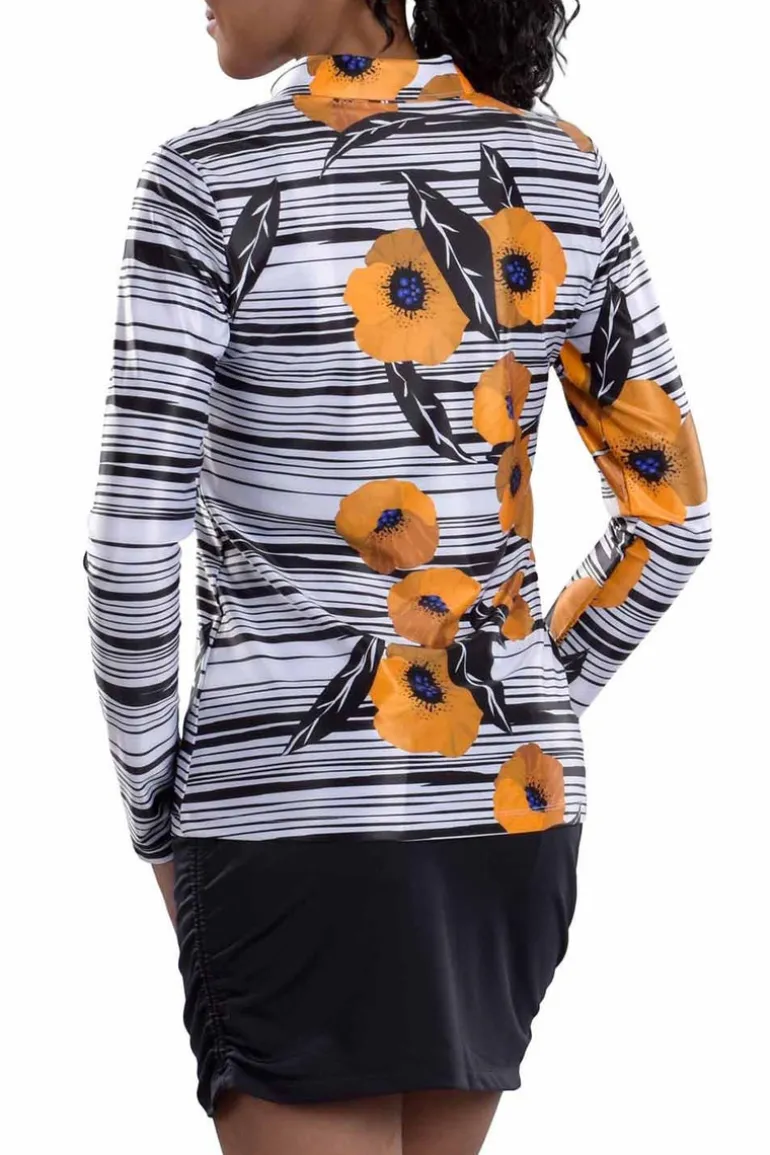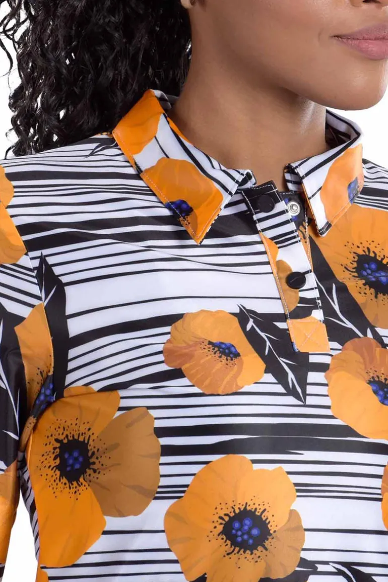 This Perfect-Fit, Performance, Long-Sleeve Polo is carefully designed from a performance fabric that provides a luxurious feel and a flattering drape to the stylish and sophisticated print. This fabric offers four-way stretch, UPF 50+ sun protection and wrinkle- free properties.