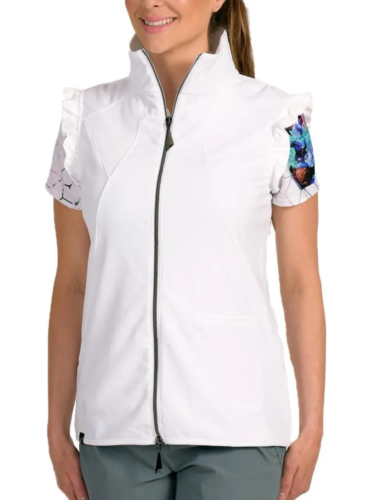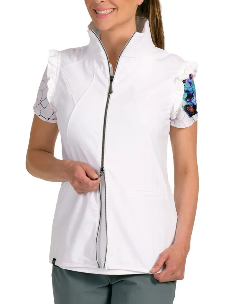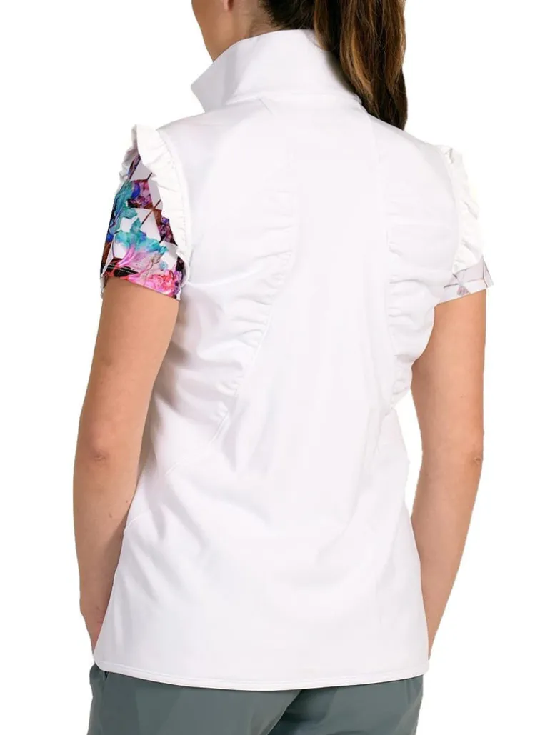The Valerie white vest is a classic must-have but with a SwingDish twist. We love a well-placed ruffle detail and this has us swooning. The soft material that stretches with you ensures that you can move freely through your swing.